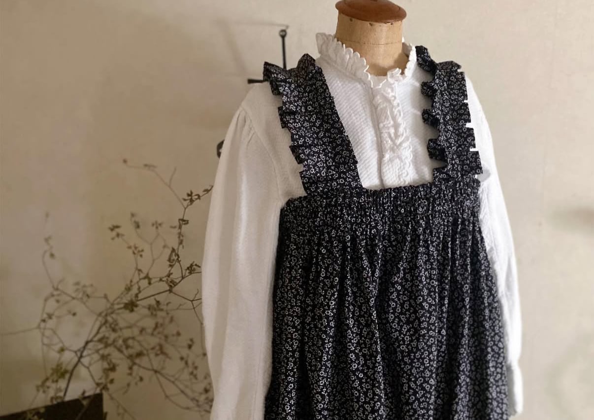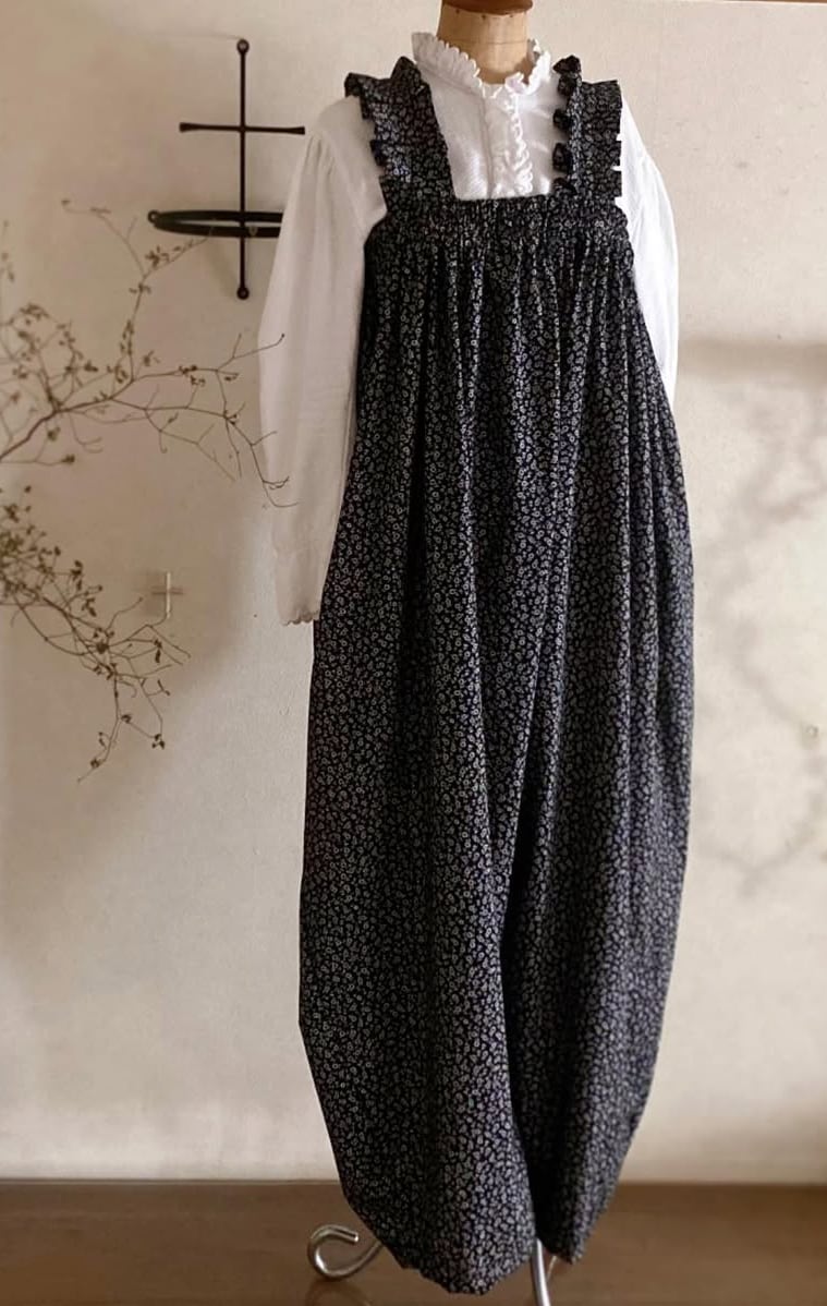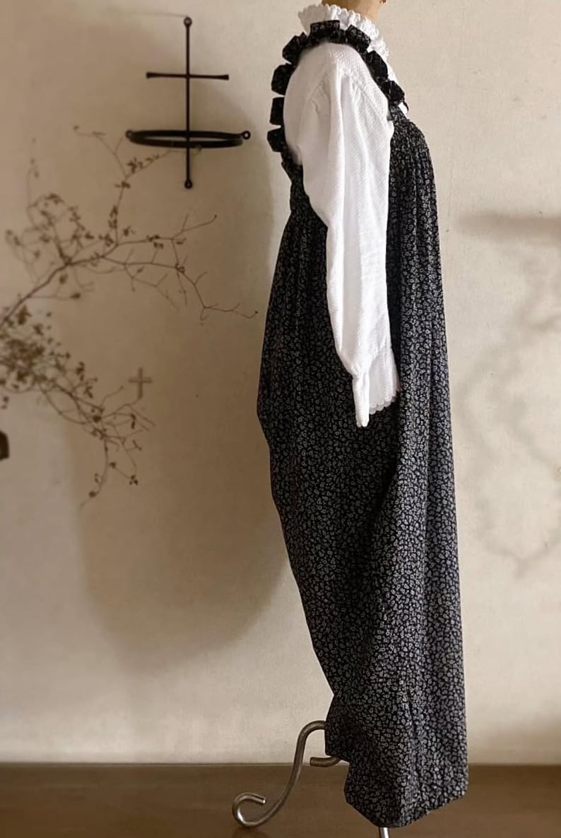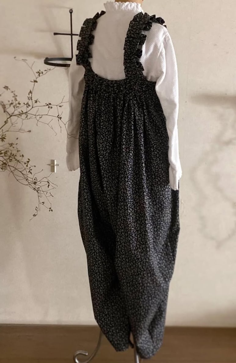 黒小花の肩フリル可愛いサロペットパンツ◌︎·˖*̣̣̥