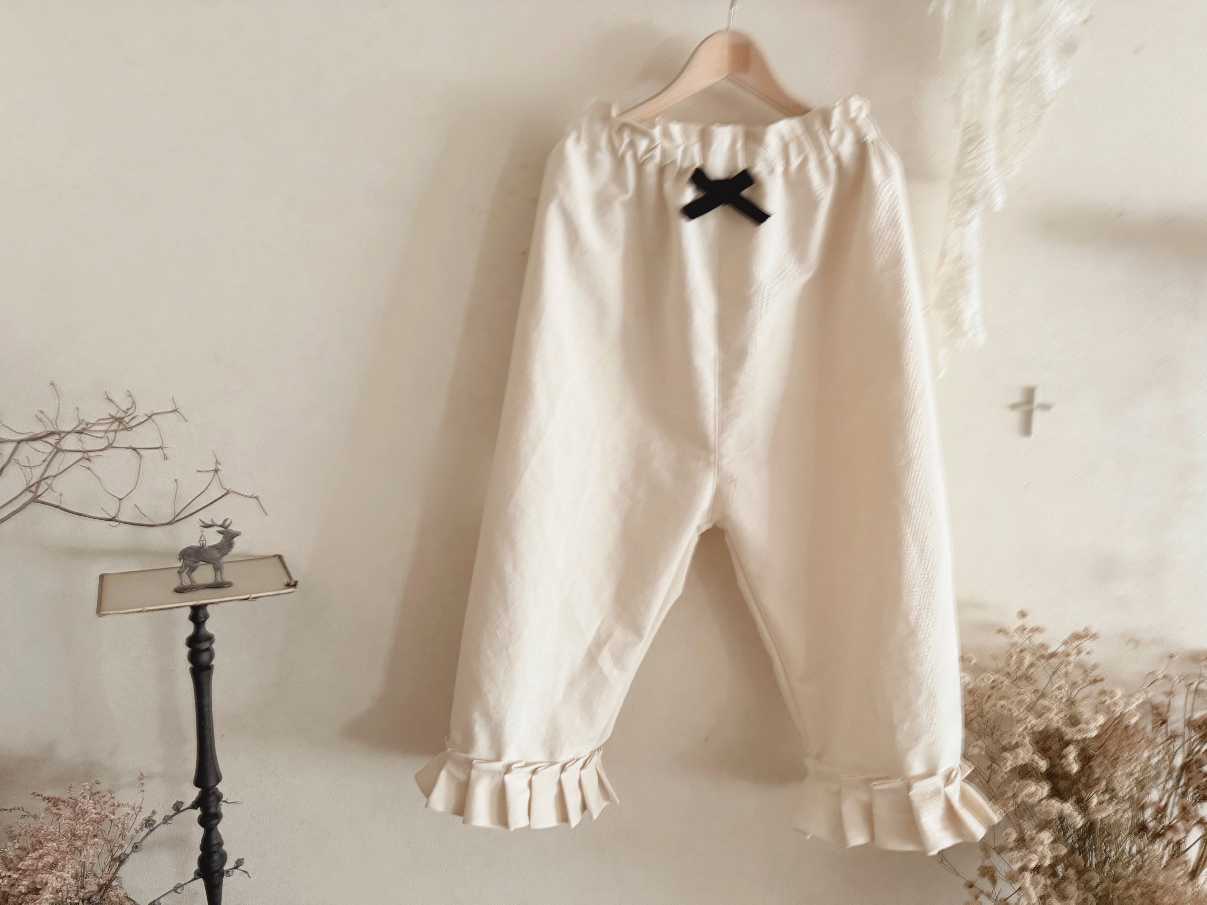 白コットン裾フリルパンツ/ベルベットリボン